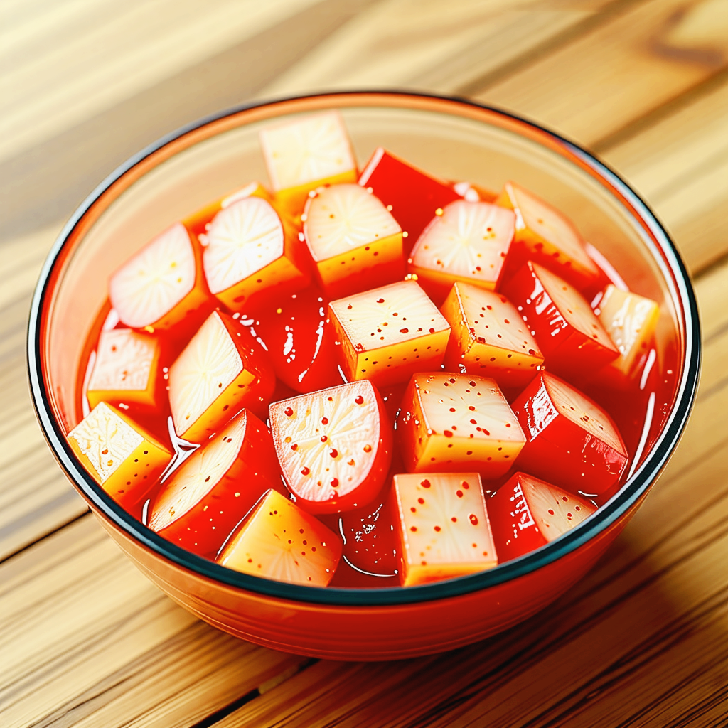 - 무 선택이 중요: 무의 수분과 단맛이 깍두기 맛을 좌우하므로 단단하고 달큰한 무를 고르세요.