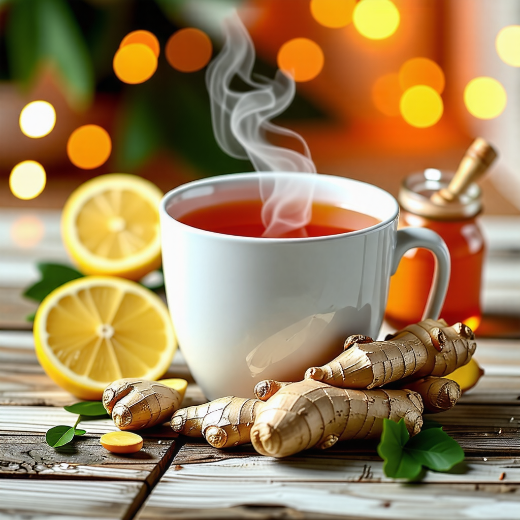 생강은 항염 및 항균 작용을 하며, 몸을 따뜻하게 해 땀을 유도하고 감기 증상을 완화합니다. 생강차를 만드는 방법은 얇게 썬 생강을 끓는 물에 넣고 10분간 우린 뒤, 꿀을 첨가하면 목의 통증을 줄이고 에너지를 보충할 수 있습니다.