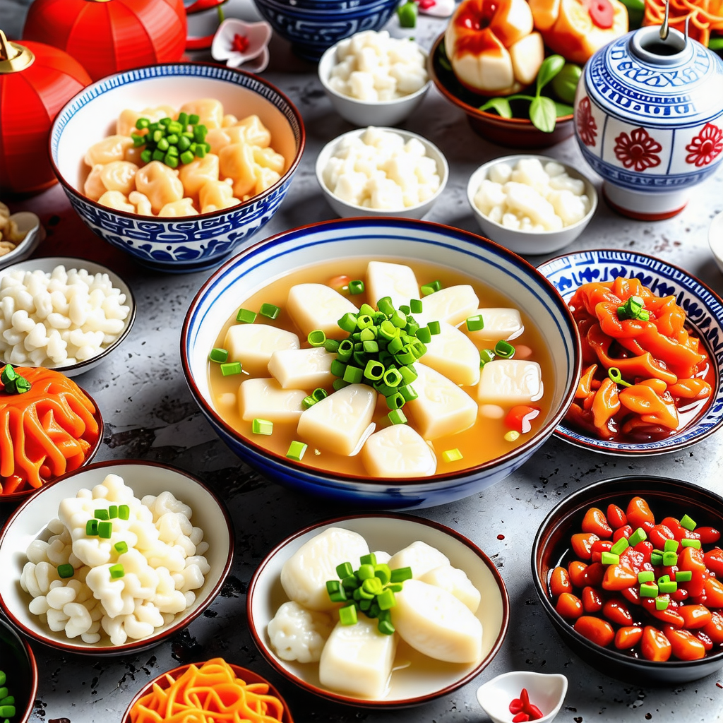 재료: 돼지고기, 두부, 밀가루, 계란, 소금, 후추, 다양한 채소